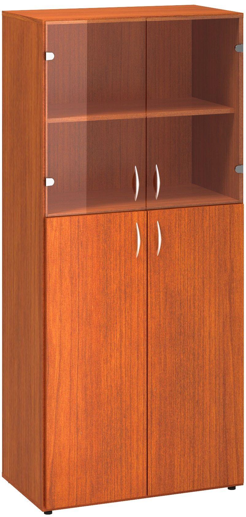 Policová skříň ALFA 500 5M (3M dveře / 2M dveře sklo), třešeň
