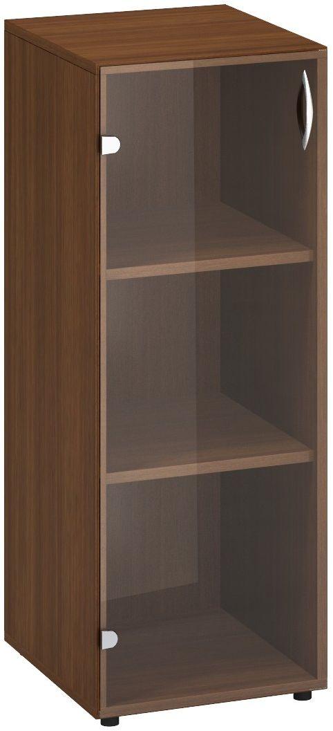 - Policová skříň ALFA 500 úzká, 3M levé dveře sklo, ořech