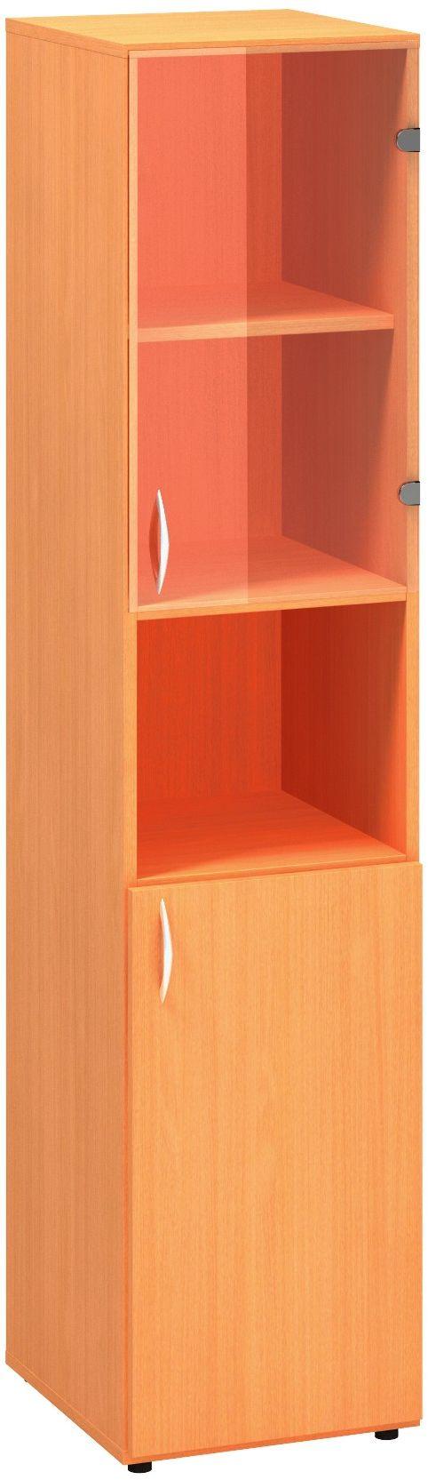 - Policová skříň ALFA 500 úzká, 5M (2M pravé dveře / 1M nika / 2M pravé dveře sklo), buk bavaria