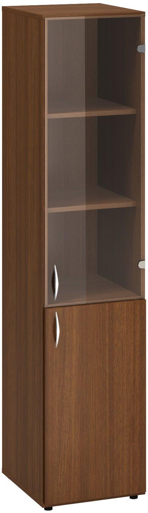 Policová skříň ALFA 500 úzká, 5M (2M pravé dveře / 3M pravé dveře sklo), ořech