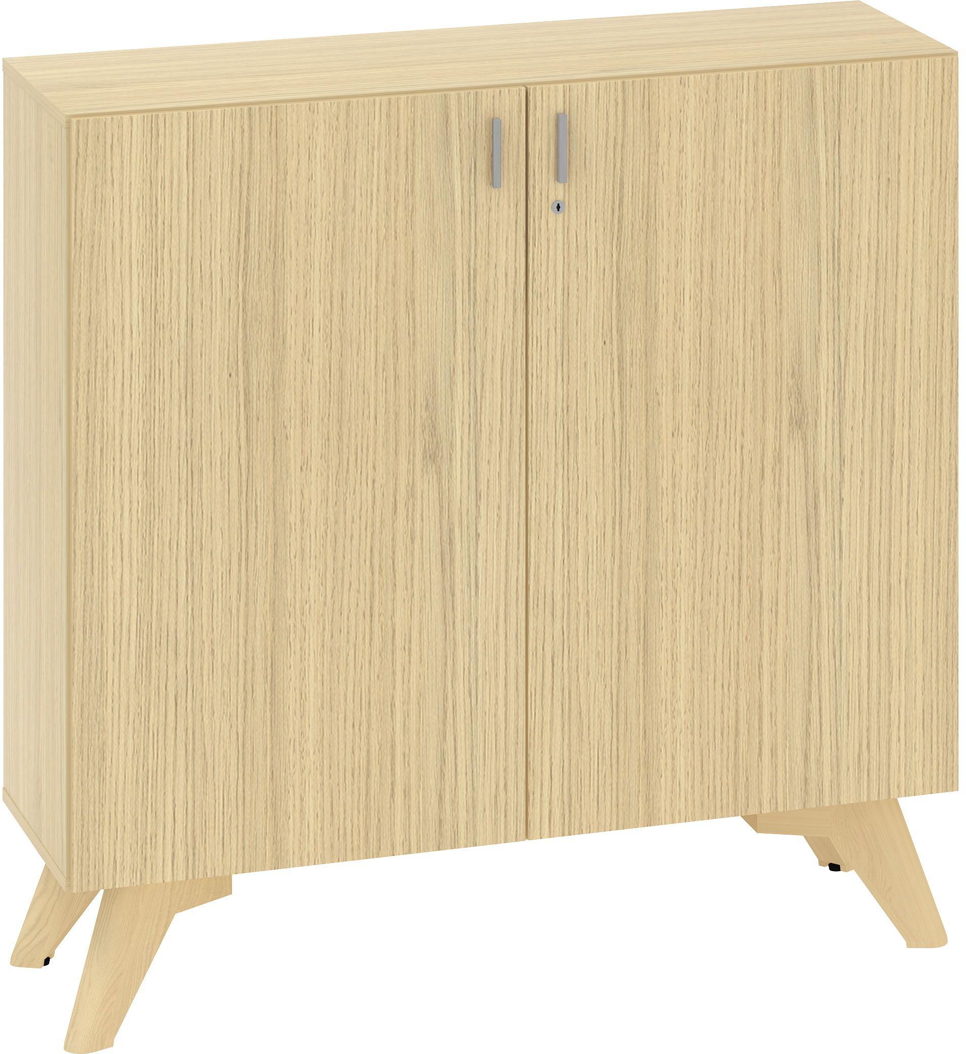 Modelová řada ALFA ROOT respektuje současnou potřebu lidí vracet se k přírodě a obklopovat se přírodními materiály. Proto je i řada ALFA ROOT jakýmsi návratem k našim kořenům – a to s ohledem na design i použité materiály. Nohy u modelové řady ALFA ROOT jsou zhotoveny z masivního dřeva (jasanu) Jelikož jde o přírodní materiál, tak se kresba let a barevný odstín dřeviny mohou lišit a do budoucna měnit své zabarvení. Korpusy z jednoho barevného odstínu LTD tl. 18 mm ukončené 1 mm ABS hranou. Pevná, oboustranná pohledová záda z LTD o tl. 8 mm. Vzhledem k oboustranně pohledové úpravě zad jsou vhodné i do prostoru kanceláře. Křídlové dveře z LTD tl. 18 mm s 2 mm ABS nebo sklo o tl. 6 mm, rozevření dveřních křídel až do úhlu 110°, závěsy dveří click-clack.
