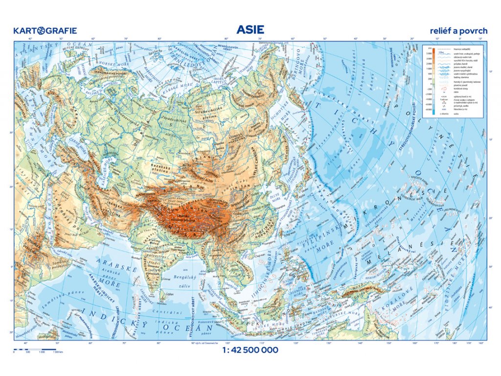 - Příruční mapa ASIE - reliéf a povrch / státy a území