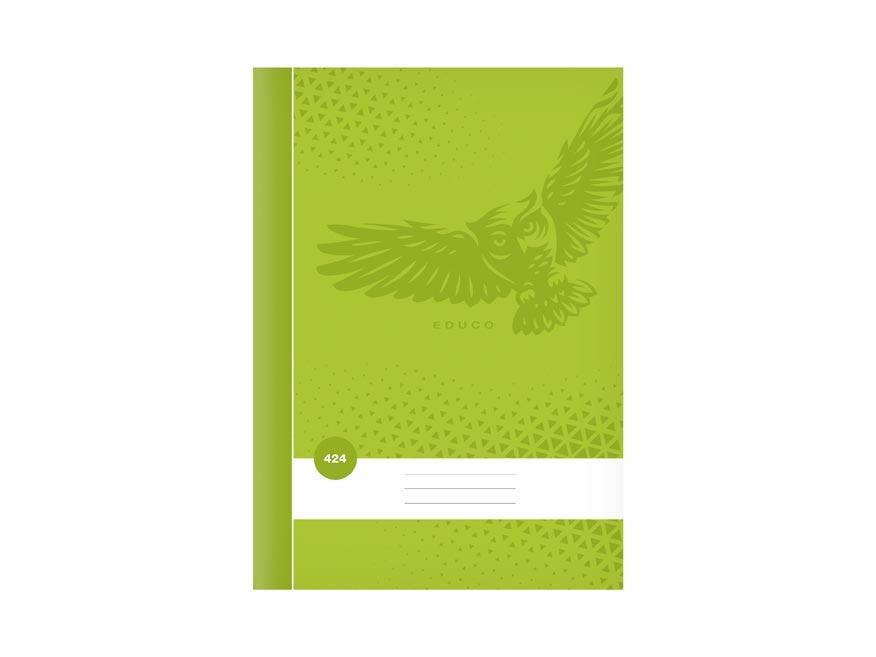 - Školní linkovaný sešit ve formátu A4, v zelené barvě, s motivem sovy, v deskách z křídového papíru